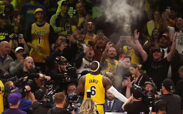 早在2022-2023赛季开始前,NBA联盟便在为这个历史时刻造势,随着詹姆斯越来越接近38387分这个里程碑,外界的关注度可想而知。最近一个月以来,“詹姆斯何时成为历史得分王”成为NBA最热的话题,詹姆斯每参加一场比赛,所有人都在为他“算分”。