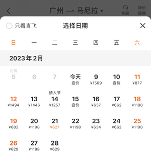 携程平台数据显示,2月-3月,广州前往马尼拉的机票几乎均低于千元;2月21日,广州到马尼拉的机票最低仅627元;2月19日,上海到普吉的机票价格最低为869元;2月24日,广州到新加坡的机票价格最低仅629元。
