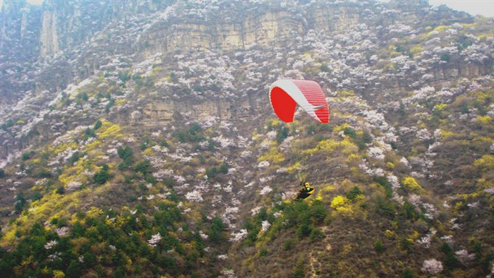 林州国际滑翔基地游客正在体验滑翔运动。
