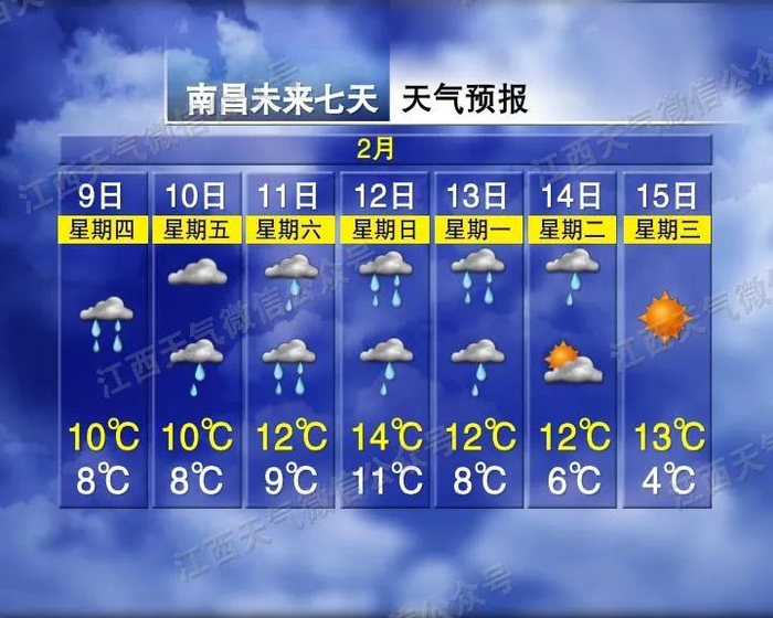 明天最低温度:赣北、赣中7~9℃,局部6℃;赣南10~12℃。