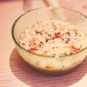 炒米糖开水、凉虾、冰粉、老荫茶是20世纪四五十年代流行于重庆街头的大众饮品。作为饮品,炒米糖开水的制作不是很复杂,先在碗里放一些白糖和猪油,再把事先炒香的大米放入,最后把开水冲入碗中,用调羹搅一下,让炒米浸些糖水。这一搅,一股特殊的香气扑鼻而来。