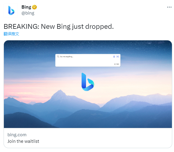 通过与 ChatGPT 发明者 OpenAI 合作,微软给自己的搜索引擎加入了先进的 AI 对话模型,以支持全新版本的必应(Bing)和 Edge。