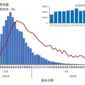 2022年12月9日以来,各省份报告人群核酸检测阳性数及阳性率呈现先增加后降低趋势,阳性人数12月22日达到高峰(694万)后波动下降,2月6日降至最低(0.9万);检测阳性率12月25日(29.2%)达高峰后波动下降,2月4日降至最低(1.2%),2月6日略有回升(1.5%)。