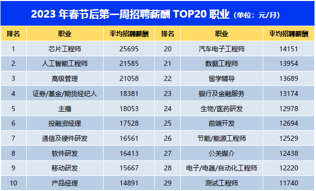 今年春招季的高薪职位仍以技术型为主,如通信及硬件研发、软件研发、移动研发等。