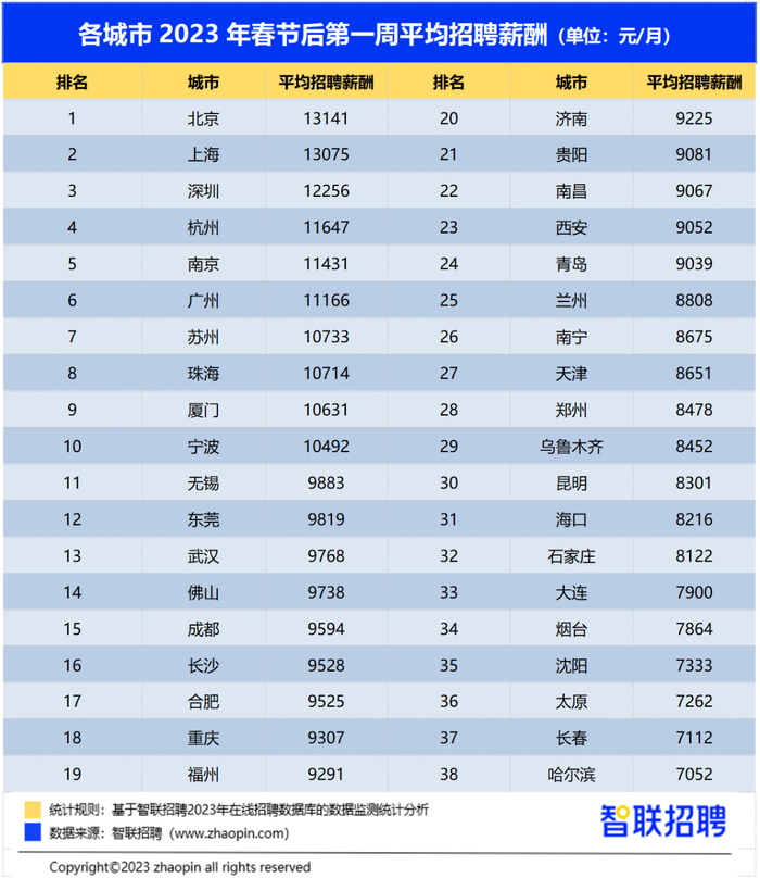 调研数据显示,春节后首周求职人数同比增长19.1%,企业招聘的平均薪酬为10038元/月。分城市看,节后广州、深圳、珠海三市平均薪酬均破万元。其中,深圳平均招聘薪酬12256元/月,广州平均招聘薪酬11166元/月,珠海平均招聘薪酬10714元/月。佛山平均招聘薪酬为9738元/月。