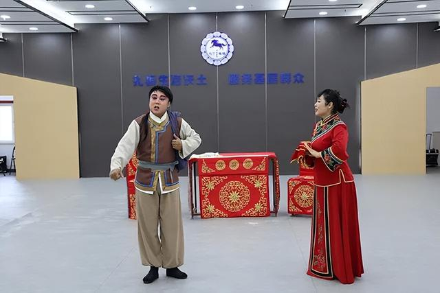 在土默特右旗乌兰牧骑二人台艺术团排练大厅,演员们正在精心准备节目。乌兰牧骑演出队长李欢说:“我们队员平均年龄30多岁,大家特别喜爱二人台这门艺术,一定会将其发扬光大。”