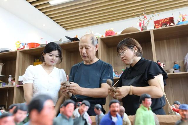达拉特旗泥塑非遗代表性传承人邬飞龙(中)在教学。