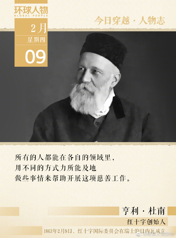 1863年2月9日,亨利.杜南等5人在瑞士日内瓦宣告成立"伤兵救护国际委员会",它就是红十字国际委员会(ICRC)的前身。1901年,亨利.杜南先生因其对红十字运动做出的巨大贡献而荣获首次颁发的诺贝尔和平奖。1948年,红十字会协会理事会决定把每年的5月8日(亨利.杜南生日)定为世界红十字日。