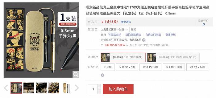 作为易耗品的各种笔,也因为进口品牌、限量、联名款等因素实现了价格翻番。在网络上,航海王unique黑金系列中性笔,就曾因为高达55元的售价登上微博热搜。而在自动铅笔品类中,哈利·波特联名款的4支装自动铅笔标价为88元,单支迪士尼白雪公主联名款自动铅笔的售价竟然能够达到69元,足见IP联名文具的超高溢价。