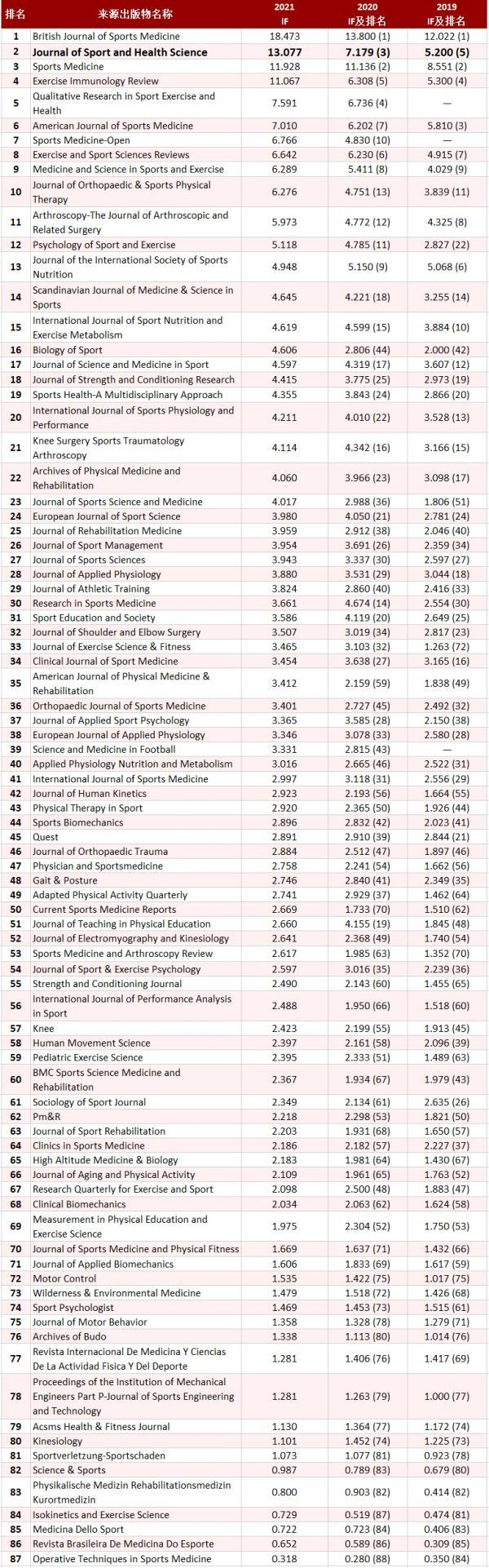 一本来自上海的全英文体育学术刊物,已成功迈入国际一流体育学术期刊行列。2022年6月,科睿唯安(Clarivate Analytics)公布了《期刊引证报告》(JCR)最新数据,上海体育学院创办的英文版体育学术期刊《运动与健康科学》影响因子跃升至13.077,学术影响力排名(体育学期刊)SSCI世界第一、SCI世界第二。