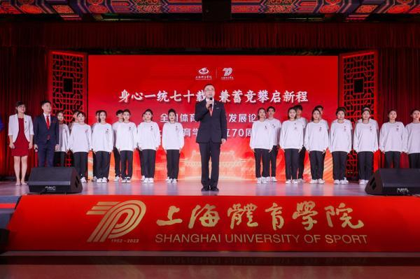 2022年11月,全国体育学学科发展论坛暨上海体育学院成立70周年大会在上海体育学院绿瓦大礼堂举行。上海市有关领导、兄弟高校和合作单位代表出席大会,国际奥委会主席巴赫向学校发来祝福视频。