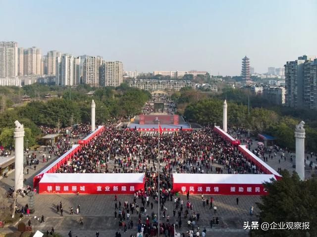 1月29日,在四川省内江隆昌市莲峰公园龙凤广场拍摄的“新春送岗”专场招聘活动现场(无人机照片)黄正华 摄 图源:CICPHOTO