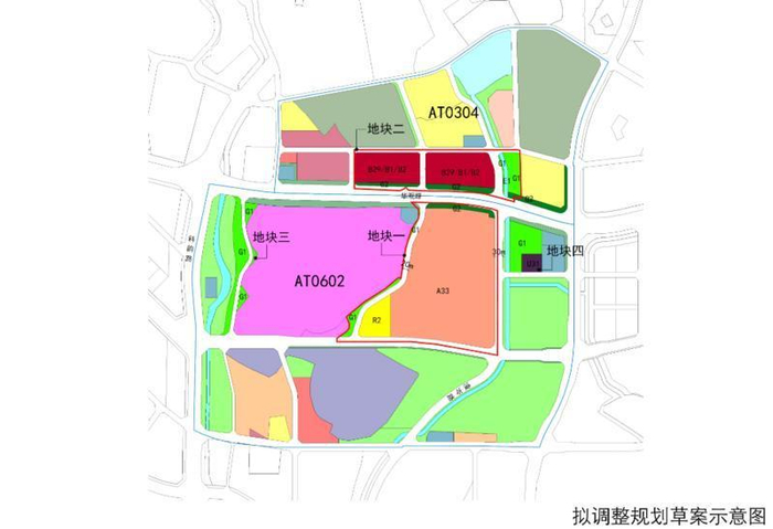 地块三由其他交通设施用地调整为公园绿地,地块四由公园绿地调整为安全设施用地。