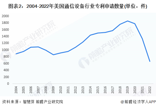 美国通信设备专利申请数量在2019年达到顶峰