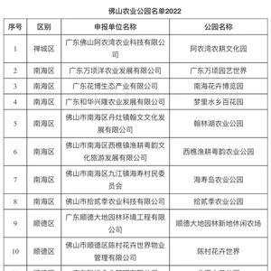 近日,佛山市农业农村局发布了2022年佛山农业公园名单,全市有28个单位榜上有名。其中,阿农湾农耕文化园、海寿岛农业公园、北滘大美公园、碧桂园万亩智慧农业园为新申报单位。