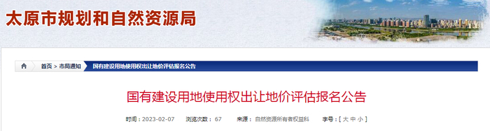 太原市规划和自然资源局国有建设用地使用权出让地价评估报名公告