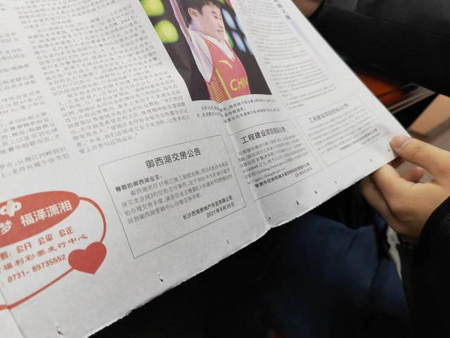 被告拿出一份报纸说,“我司已在2021年9月28日出版的《湖南日报》上公告交房了。”但上述业主表示,他根本没有看到这份报纸的公告。