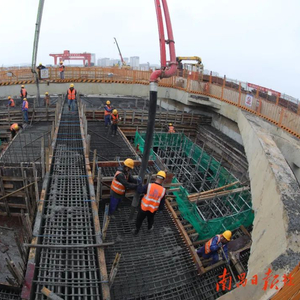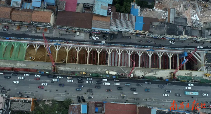 在南昌地铁1号线东延工程麻丘站施工现场,工人们正加紧进行主体结构施工。