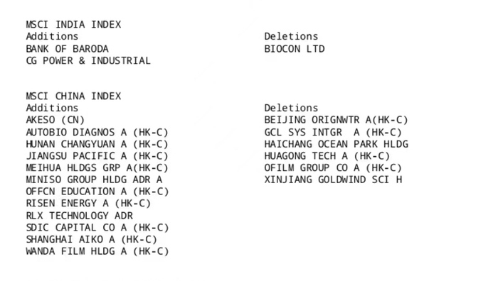 MSCI名单最新变动