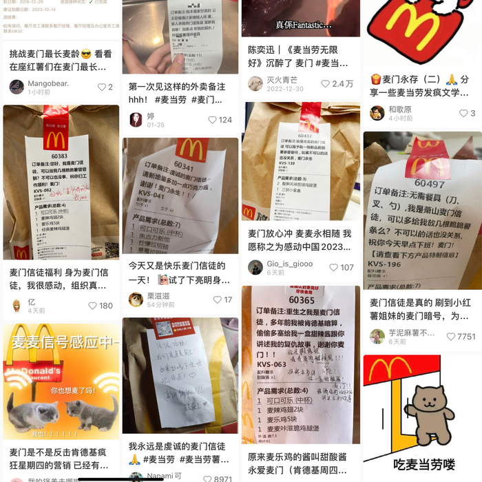 最近在小红书等社交平台,你会频繁看到有人晒出在麦当劳外卖配送单上搞的神秘“创作”——譬如“我是麦门信徒,可以多给我放几根脆脆薯条吗?麦门永生!”,甚至还有“重生之我是麦门信徒,多年前被肯德基暗算,偷偷多塞给我一盒甜辣酱跟你讲述我的复仇故事,谢谢你麦门!”