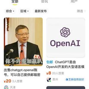 不过,在闲鱼平台以“openai”为关键词搜索仍能发现不少卖家提供ChatGPT代问代注册服务。记者此前测试的“社小牛”“小AI问答”等提供ChatGPT对话服务的微信公众号目前也正常运行。