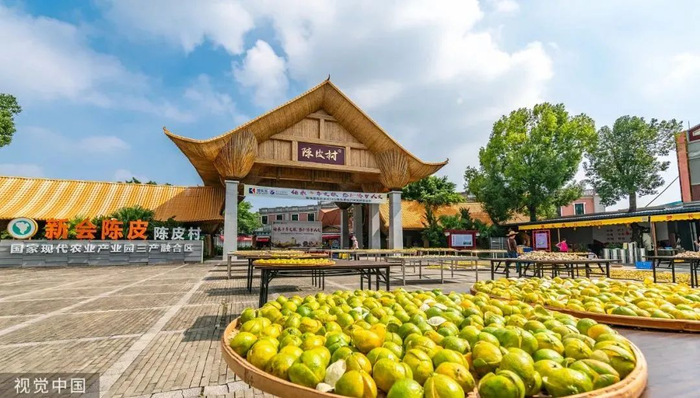 广东江门新会陈皮村,是以新会陈皮“种植、收储、鉴定、研发”为核心,集陈皮交易、特色餐饮、休闲养生、文化旅游于一体的中国首个大型特色农产品商业文化综合体