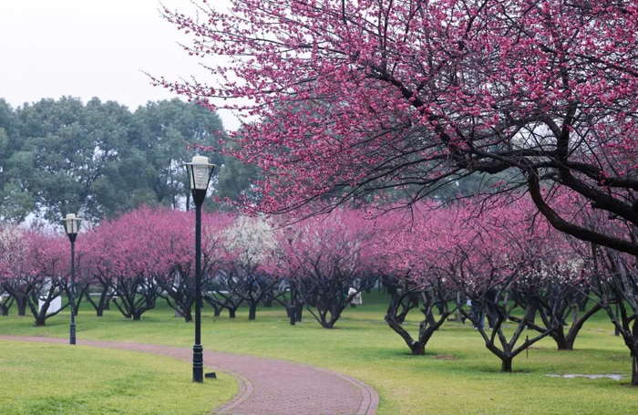 橘子洲景区梅园总面积近2万平方米,主要有红梅、绿萼、垂枝梅、游龙梅、杨贵妃、江南朱砂、美人梅、玫瑰红等10多个品种共计700余株。目前,橘子洲梅园里的梅花刚开始盛放,很多树上还是密密麻麻的花骨朵,预计接下来一段时间都是赏梅的好时节,想要赏花、拍照打卡的,可以开始行动啦!