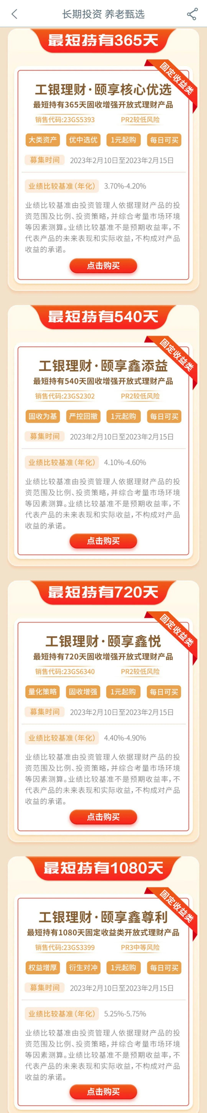 2月10日,工商银行APP的个人养老金专区也正式挂出四只四只个人养老金理财产品的购买链接。