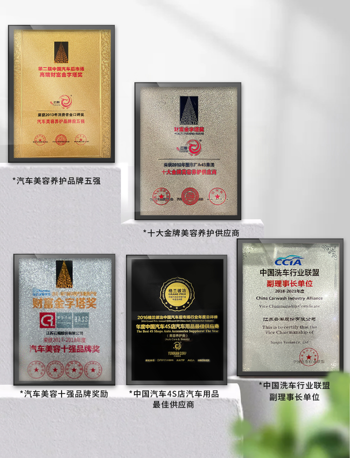 车米兜玻璃油膜去除剂的研发生产团队授权于江苏云瀚,拥有汽车养护品20余年的行业经验,在业内获得了良好的口碑和多项殊荣!