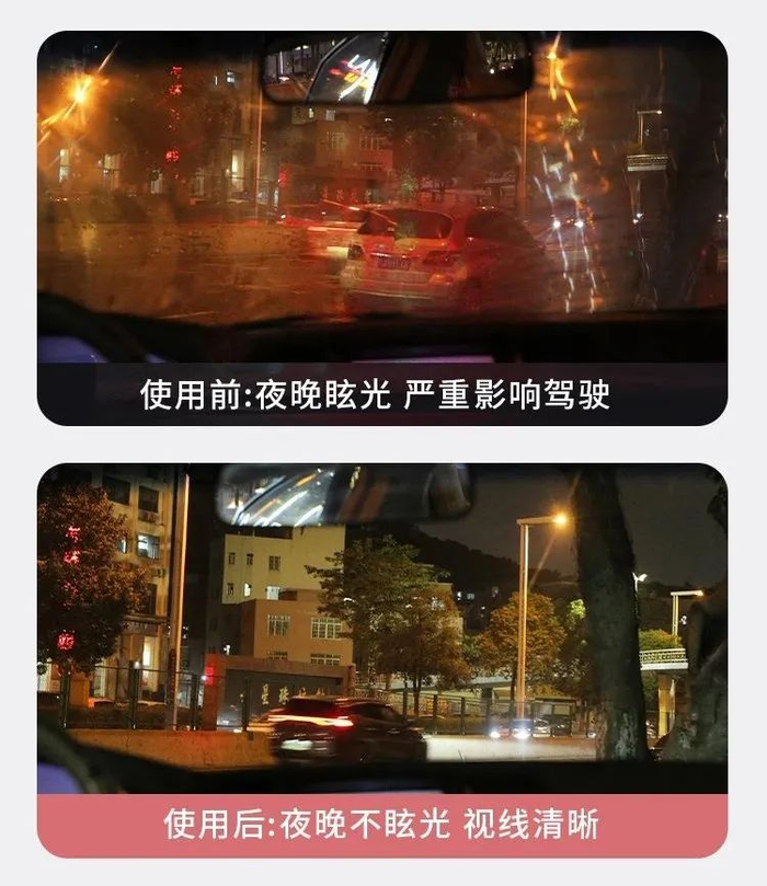 用这款油膜去除剂清洗一下玻璃,一扫眼前刺眼的眩光,夜间也可清晰的辨别出前方来往的车辆行人。