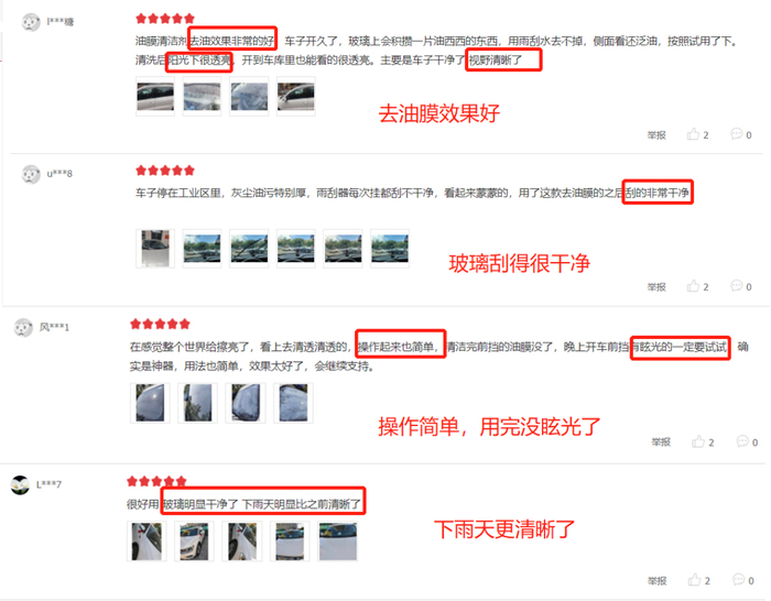除油膜效果给不给力,咱们用过的车主最有发言权了,来看看他们都是如何评价这款产品的: