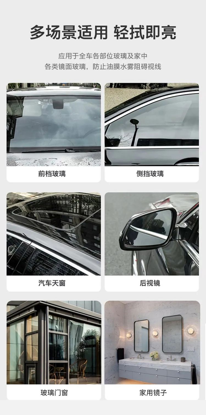 除了汽车玻璃,家里的镜子,玻璃门窗都可以用它清洁,一瓶多用,多囤点还更划算哦。