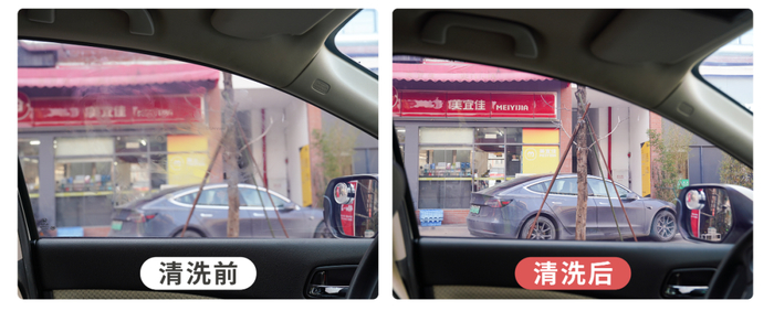 清洗效果与前档玻璃无异,真正意义上做到