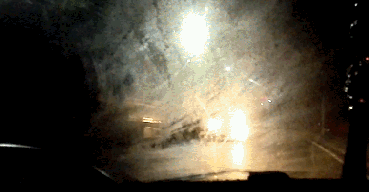 这种状态下的玻璃,白天还能勉强撑一撑,可一到晚上,路灯、车灯的光就会全部散射在玻璃上,感觉跟盲开没啥区别。