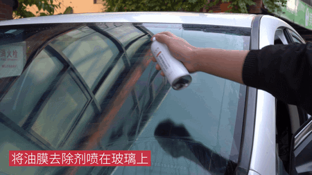 针对这种重度油膜,我们需要将油膜去除剂喷在需要施工的玻璃表面,并用配套的干毛巾擦拭均匀,让泡沫渗透溶解油污。
