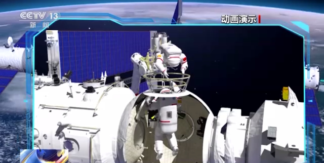 中国航天员中心工效学分系统主管设计师刘梁:这次出舱任务,很显著的特点就是航天员转移的路径比较长,也是前期任务所没有的,特别是航天员03就是张陆,他在舱外爬行的扶手总共需要爬行140个扶手左右,还是比较辛苦的。
