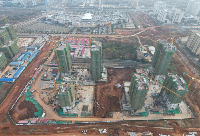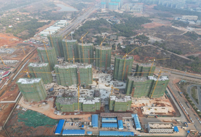 目前B01地块正在进行主体结构施工,即将进入装饰装修阶段;B02地块部分已完成主体结构封顶,正在进行主体墙体砌筑施工;A03地块正在进行地下室结构及主体结构施工。整体项目预计2024年12月完工。