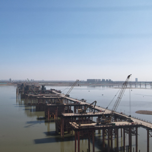 截至1月底,洪州大桥工程正在进行桥梁主体结构施工,其中承台完成57%,墩柱完成52%,盖梁完成30%,T梁完成10%,西侧主塔已施工完第六节(标高44.17m,累计完成26.1%)。