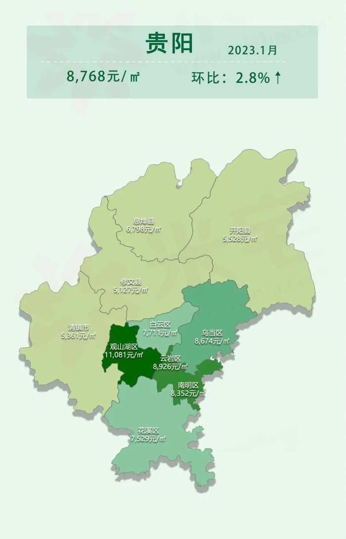 全国各省市区1月份房价