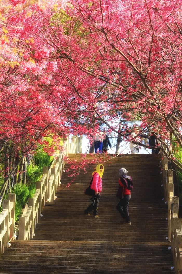 绯寒樱、染井吉野樱、牡丹樱、福建山樱等42个樱花品种,从1月下旬开始就次第开放,一直持续到3月。