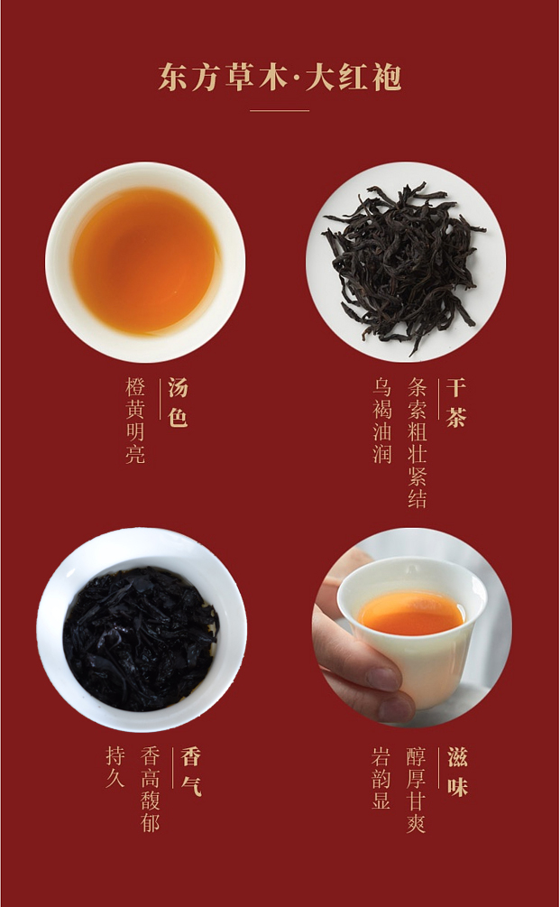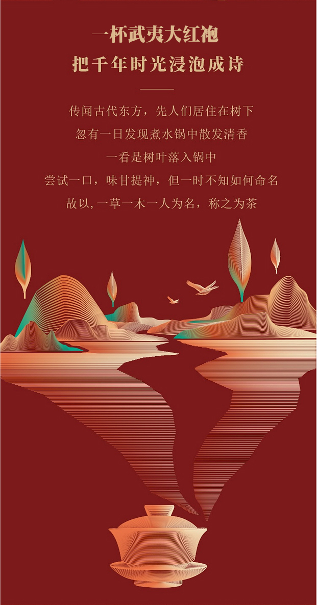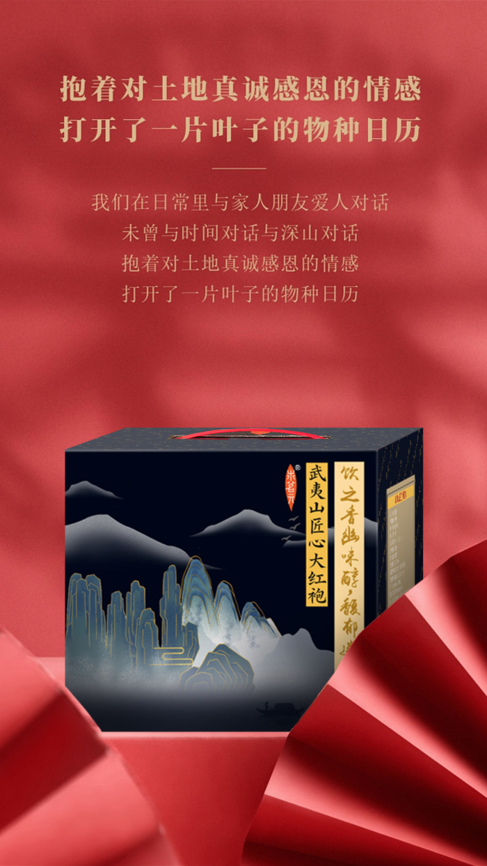 大红袍生于武夷峭崖悬壁之间,自然纯粹,品高自显,所谓“岩茶之首”。其臻武夷山川灵秀之所钟,蕴岩骨花香至味为涵,“大红袍、红天下”,名扬四海。
