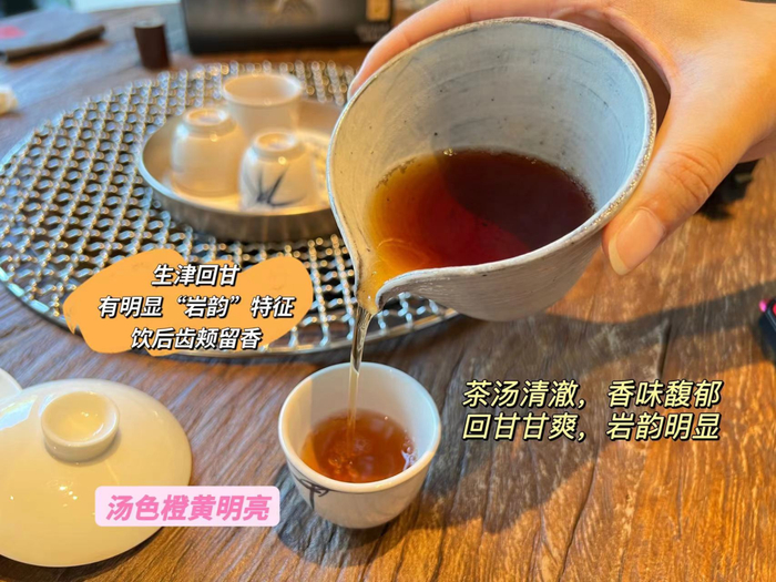 滋味:茶味浓厚醇和,生津回甘,有明显“岩韵”特征,饮后齿颊留香