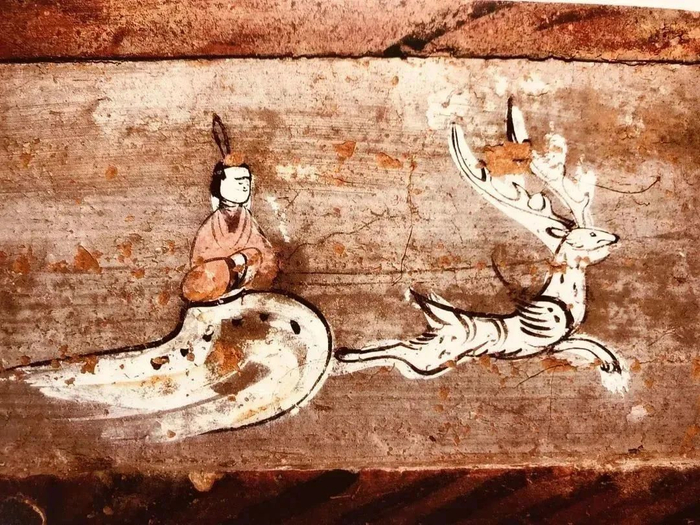 图15/ 升仙:上、中为2005 年陕西靖边县杨桥畔杨一村东汉墓出土,下为2003 年陕西定边县郝滩乡汉墓出土(引自徐光冀主编:《中国出土壁画全集6:陕西(上)》,图版八八、七二、六二)