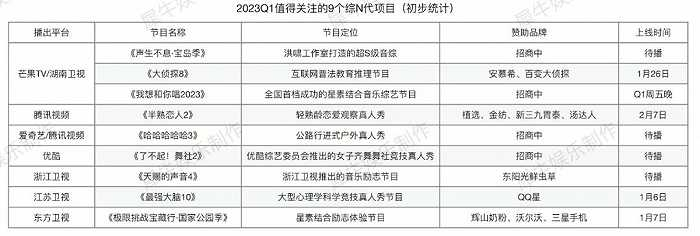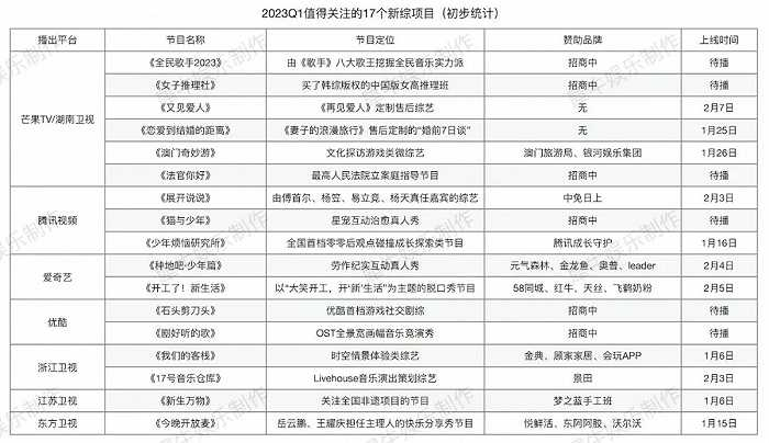 不同于去年Q1行业笼罩在项目停摆、招商遇冷的乌云密布中,今年Q1我们迎来的是一个各方面都在逐渐复苏中的综艺市场,很期待2023行业还会书写怎样的“新故事”。