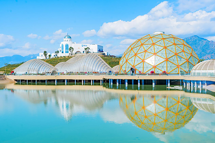 5.金杯半山·米易太阳谷康养度假区:度假区坐落于新山傈僳族乡,背靠龙肘山,左倚米易梯田,以抗衰康养、亲子度假为主题,以太阳文化、热带风情、花山果海为核心规划理念,坚持国际化、产业化、智慧化、低碳化和高质量发展方向,是集“医、养、游、居、文、农、林”七位于一体的复合型大康养旅游度假区。