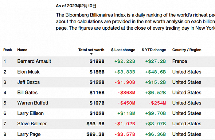 目前的首富阿尔诺是奢侈品巨头LVMH集团董事长,其财富一直以来走势平稳,在未来短时间内也不大可能骤然变化;而目前在富豪榜上位居第三的亚马逊创始人杰夫·贝索斯(Jeff Bezos)身价1210亿美元,短时间内赶超的可能性不大。