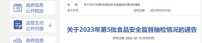 山西省市场监管局关于2023年第5批食品安全监督抽检情况的通告
