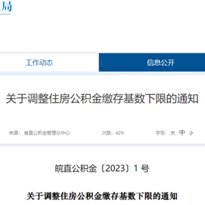 2月3日,安徽省机关事务管理局发布了《关于调整住房公积金缴存基数下限的通知》,通知自2023年3月1日起执行。