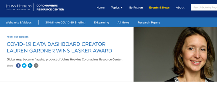 另外,这个项目还给美国的女性赋权带来了很积极的意义。因为NPR表示,这个项目的参与者绝大多数都是女性。其中,作为项目创始人的加德纳还在去年获得了美国生物医学界知名的拉斯克医学奖,以表彰她的这个追踪世界疫情形势的地图项目。