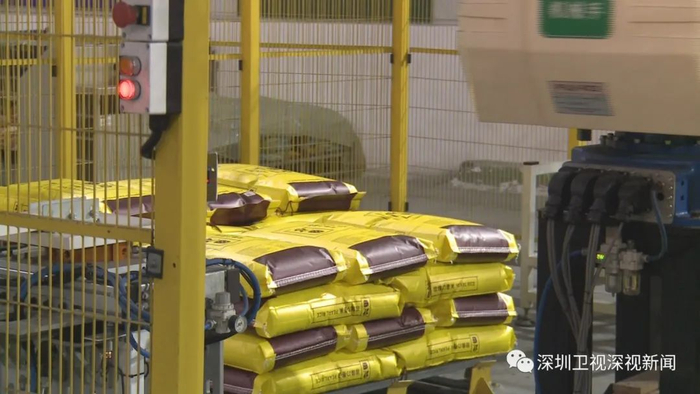 在深圳宝安一家“圳品”大米生产企业,工作人员正对大米进行抛光、去沙等自动化处理,而这批大米在运到深圳前,就进行了300多道检测工序。